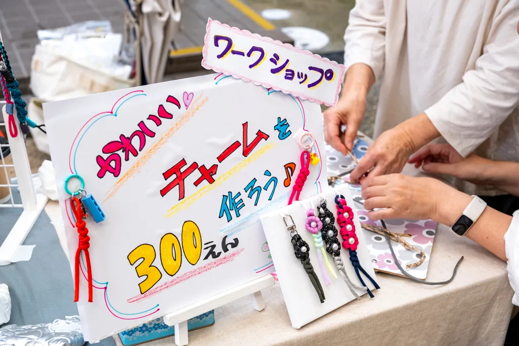 芥川商店街土曜市は、年に5回ほど開催されるイベントで、ハンドメイド作家さんや焼き菓子屋さんなど、20軒近くのお店が出店します。